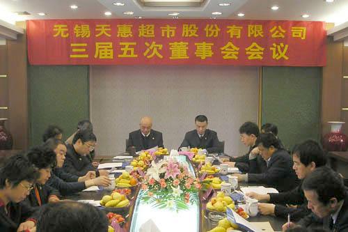 2007年3月25日,無錫天惠超市股份有限公司在集團公司第二會議室舉行了三屆五次董事會會議。會議由董事長張慶卿先生主持。