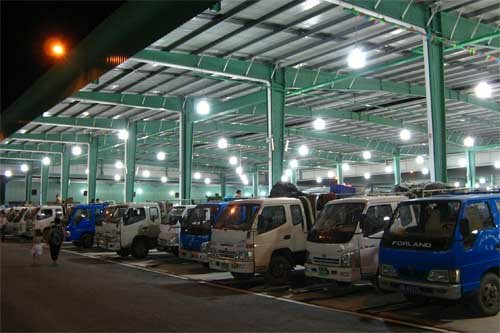 朝陽集團有限公司負責人介紹,與老市場比,新市場地方更寬敞,麵積達到100畝;原來市場露天交易多,現在4萬(wan)平(ping)方(fang)米(mi)的(de)四(si)個(ge)鋼(gang)結(jie)構(gou)標(biao)準(zhun)化(hua)大(da)棚(peng)避(bi)免(mian)了(le)日(ri)曬(shai)雨(yu)淋(lin)。交(jiao)通(tong)暢(chang)通(tong)多(duo)了(le),以(yi)後(hou)逐(zhu)步(bu)可(ke)以(yi)由(you)夜(ye)間(jian)經(jing)營(ying)發(fa)展(zhan)到(dao)白(bai)天(tian)。此(ci)外(wai),新(xin)市(shi)場(chang)硬(ying)件(jian)設(she)施(shi)大(da)大(da)提(ti)高(gao),交(jiao)易(yi)大(da)棚(peng)地(di)麵(mian)都(dou)是(shi)經(jing)過(guo)硬(ying)化(hua)處(chu)理(li)的(de)水(shui)泥(ni)地(di)麵(mian),其(qi)它(ta)地(di)區(qu)都(dou)是(shi)柏(bai)油(you)地(di)麵(mian)。此(ci)外(wai)新(xin)市(shi)場(chang)對(dui)客(ke)戶(hu)提(ti)供(gong)了(le)許(xu)多(duo)新(xin)的(de)服(fu)務(wu)設(she)施(shi),如(ru)新(xin)建(jian)40畝地的停車場,改建擴大了招待所,床位由原來的100多個增加到500多個等等。零點10分左右,記者看到來自華莊的小販張師傅正在給自己的電瓶三輪車充電。市場人士介紹,這裏一共有60個專用插座,商販們的車輛可在此免費充電。