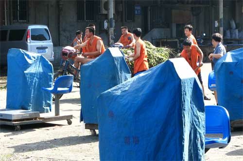 批發商、小販們和進場交易的菜農們都是“自覺”搬遷,積極性很高。7時15分,來自江西上饒的一位經營戶正推著裝滿紙板盒等零星物件的三輪車往外走,前麵一輛裝著早市剩下的1噸(dun)多(duo)包(bao)菜(cai)的(de)大(da)卡(ka)車(che)已(yi)開(kai)動(dong),他(ta)說(shuo),今(jin)天(tian)提(ti)前(qian)半(ban)個(ge)小(xiao)時(shi)落(luo)市(shi),市(shi)場(chang)管(guan)理(li)員(yuan)通(tong)知(zhi)可(ke)以(yi)搬(ban)遷(qian)後(hou),我(wo)們(men)一(yi)打(da)包(bao)就(jiu)全(quan)搬(ban)走(zou)了(le),半(ban)個(ge)小(xiao)時(shi)後(hou)就(jiu)可(ke)以(yi)到(dao)新(xin)市(shi)場(chang)了(le),那(na)邊(bian)已(yi)給(gei)我(wo)們(men)安(an)排(pai)好(hao)了(le)交(jiao)易(yi)位(wei)置(zhi)。小(xiao)販(fan)們(men)進(jin)完(wan)了(le)貨(huo)高(gao)興(xing)地(di)離(li)場(chang),準(zhun)備(bei)今(jin)晚(wan)在(zai)新(xin)市(shi)場(chang)的(de)第(di)一(yi)次(ci)進(jin)貨(huo)。還(hai)有(you)本(ben)地(di)2000多戶進場交易的菜農,在淩晨三四時已完成交易,回到各自農田準備今晚到新市場開市。