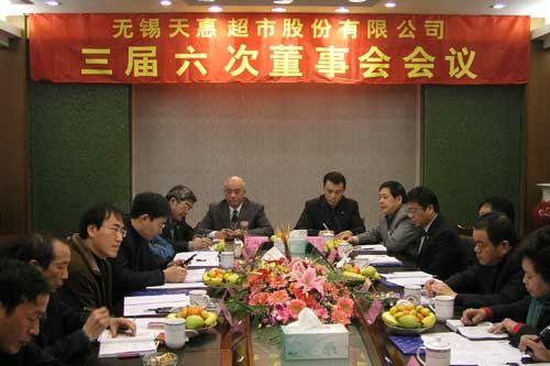 2007年12月22日,無錫天惠超市股份有限公司三屆六次董事會會議在無錫舉行。會議審議並通過如下決議: