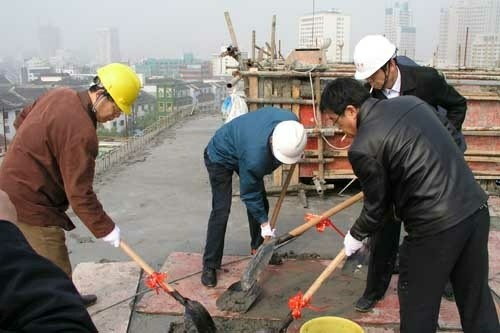 由江蘇無錫朝陽集團有限公司負責建設的朝陽農貿市場商場化改造工程,主體三層,局部五層,總建築麵積17940平方米,自2007年9月啟動建設後,經過近8個月的施工,今天(4月23日)早上8:28分正式封頂了。