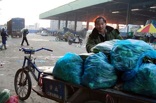 當新年第一縷陽光照耀到人們身上的時候,忙碌在無錫朝陽農產品大市場蔬菜區的客人,即將完成他們清早的勞作。