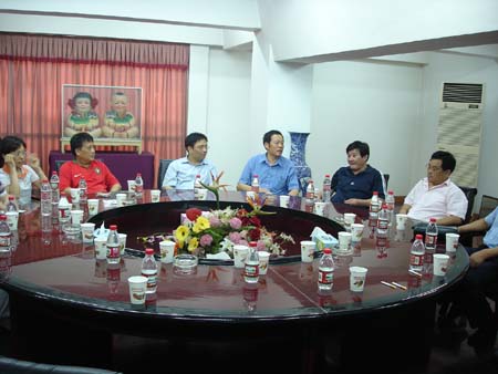 7月9日,宜興瑞德蔬菜果品批發市場有限公司總經理周介華一行來朝陽農產品大市場調研考察。朝陽股份有限公司總經理錢韌、無錫市蔬菜果品行業協會會長王漢如接待了來訪的宜興客人。