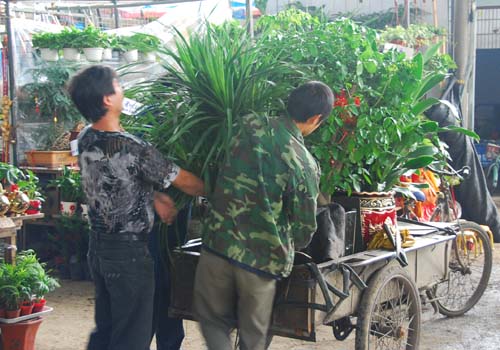 剛gang剛gang遷qian入ru槐huai古gu路lu朝chao陽yang花hua卉hui區qu經jing營ying的de原yuan無wu錫xi市shi南nan禪chan寺si花hua卉hui市shi場chang,節jie日ri前qian夕xi一yi派pai喜xi氣qi洋yang洋yang。雖sui然ran是shi臨lin時shi過guo渡du性xing經jing營ying位wei,但dan個ge個ge整zheng齊qi劃hua一yi,各ge種zhong盆pen花hua爭zheng奇qi鬥dou豔yan、綠意盎然。