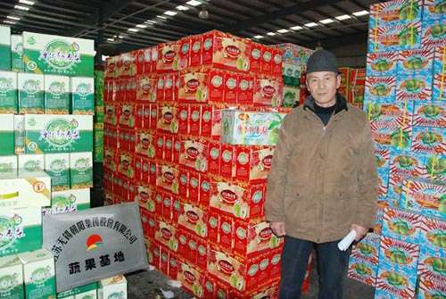 克裏木.阿布拉大叔微笑著從無錫朝陽集團董事長張海良手中接過無錫朝陽蔬菜水果基地的牌子,心裏還惦念著今晚才到達的一車香梨。