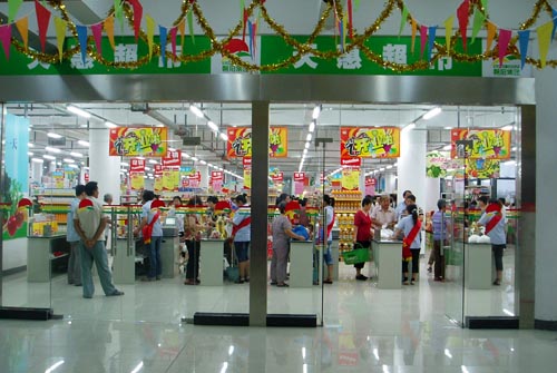 天惠堰新超市開業當天推出的多種特價商品,引眾多顧客前來購買,商場裏人潮湧動,熱鬧非凡。