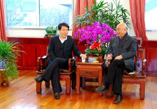 無錫朝陽集團董事長張海良、總經理楊興德、dangweishujiqianrenyunanchangqulingdaoyiqi,gongtongtantaojinyibufahuichaoyangjituanzainanchangqudequyuyoushi,jijituozhannanchansidiqudejingyingyetai,gongtongzhanwangchaoyangjituanhenanchangqugengjiameihaodemingtian。