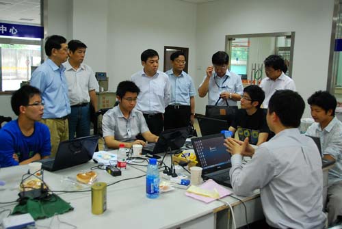 曹副市長一行對項目開發進度進行了詳細的了解,無錫市商務局副局長糜君初介紹了在朝陽集團、天鵬集團分別設立市級蔬菜、肉類備案中心的建設方案和管理辦法。朝陽集團董事長張海良、總經理楊興德、以及天鵬集團領導也分別作了項目實施情況的彙報。各行政主管部門就目前存在的問題進行了廣泛的溝通和協調,表示將通力協作、全力以赴,確保無錫市實施肉菜可追溯體係建設的圓滿成功。