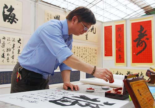 5月3日,"全國百名名人書畫收藏品展”在無錫朝陽文化工藝品市場北廣場隆重開展。