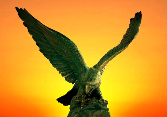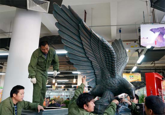 “大鵬一朝乘風起,扶搖直上九萬裏”,近日,一座以雄鷹展翅為題材的青銅雕塑落戶無錫朝陽集團文化工藝品市場。