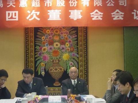 2012年12月15日上午,無錫天惠超市股份有限公司在集團公司三樓第二會議室召開了五屆四次董事會會議,董事會成員:張海良、張慶卿、楊興德、華泉榮、錢韌、邵裕妹、朱健祥、張恒、範錫炎、羅誌堅、楊小虹出席了會議。監事會組成人員及財務部陳曉列席了會議。會議由董事長張慶卿先生主持。
