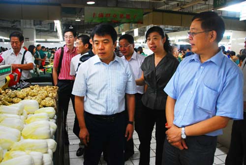 9月5日(ri),無(wu)錫(xi)市(shi)副(fu)市(shi)長(chang)史(shi)立(li)軍(jun)率(lv)市(shi)物(wu)價(jia)局(ju)局(ju)長(chang)蔡(cai)大(da)鋼(gang)及(ji)物(wu)價(jia)局(ju)副(fu)調(tiao)研(yan)員(yuan)金(jin)偉(wei)祖(zu)等(deng)市(shi)領(ling)導(dao)來(lai)到(dao)無(wu)錫(xi)朝(chao)陽(yang)集(ji)團(tuan)考(kao)察(cha)平(ping)價(jia)商(shang)店(dian)建(jian)設(she)情(qing)況(kuang)。考(kao)察(cha)團(tuan)一(yi)行(xing)先(xian)後(hou)考(kao)察(cha)了(le)天(tian)惠(hui)超(chao)市(shi)學(xue)前(qian)街(jie)店(dian)、朝陽店以及朝陽農貿市場。朝陽集團董事長張海良、總經理楊興德熱情接待了來訪領導,並就朝陽集團在平價商店建設方麵所作的主要工作進行了彙報。