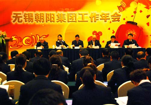 駿馬奔去雄風在,吉羊踏來祥瑞生,告別難忘的2014,全新的2015已向我們走來。在這辭舊迎新的日子裏,無錫朝陽集團2015年工作會議於元月2日—3日在蘇州香山國際大酒店隆重舉行。集團公司各單位部門共94人相聚在蘇州香山,共商企業發展大計。張董事長在會上作了重要講話,代表們聽取和審議了2014年集團公司行政工作報告和黨委工作報告。會上還表彰了朝陽股份蔬菜副食品交易市場在2014年交易時間調整工作中的突出表現,並給予了重金嘉獎。