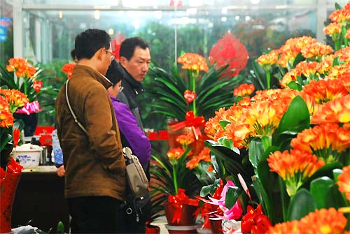 情人節來啦!今天一大早,位於南禪寺槐古路6號hao的de無wu錫xi文wen化hua工gong藝yi品pin市shi場chang花hua卉hui區qu已yi是shi熙xi熙xi攘rang攘rang,人ren頭tou攢zan動dong。走zou進jin市shi場chang大da門men,滿man眼yan盡jin是shi各ge色se花hua卉hui爭zheng相xiang鬥dou豔yan,撲pu鼻bi而er來lai的de淡dan淡dan花hua香xiang更geng是shi沁qin人ren心xin脾pi。在zai幾ji個ge鮮xian花hua攤tan位wei前qian,早zao已yi圍wei滿man了le挑tiao選xuan鮮xian花hua的de顧gu客ke。玫mei瑰gui是shi情qing人ren節jie當dang仁ren不bu讓rang的de“寵兒”,短短一個上午,市場裏的玫瑰花已經告急,單支的價格也賣到了近10元一支。而一束束已包裝好的玫瑰花束更是奪人眼球,“藍色妖姬”、“水晶之戀”的名字聽著就讓人動心,當然價格也不菲,19支包裝一束的“水晶之戀”已賣到了300元。除了玫瑰花,高貴的百合、浪漫的紫羅蘭、神秘的鬱金香、清新的馬蹄蓮、快樂的“天堂鳥”、活潑的雛菊,筆直的劍蘭更是許多顧客爭相挑選的熱銷鮮花品種。