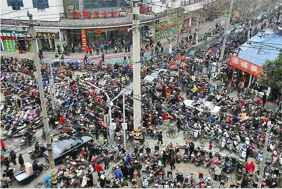 昨天上午,記者來到朝陽農貿市場,盡管考慮到擁堵的因素棄車改乘地鐵,但眼前“人擠人、車連車”的擁擠場麵依然讓記者感受到了震撼:數以萬計的電動車把廣場塞得滿滿的,人流和車隊像螞蟻一樣艱難向前挪動。