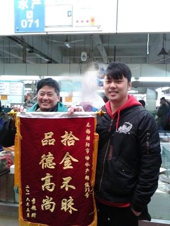 在今年的4月1日上午,顧客馬先生和往常一樣來到朝陽農貿市場買菜。當他在蔬菜攤位122號駐足時突然發現腳下有一個黑色的錢包,錢包裏有1500元現金、一張身份證、數張銀行卡。馬先生當即將錢包交給服務台。隨即市場管理員立刻用廣播尋找失主,最終根據身份證上的信息還給失主。