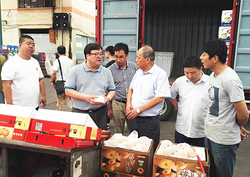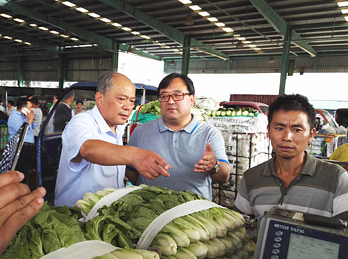 楊副調研員一行7人先後參觀了信息中心、檢測中心、結算中心,詳細了解了我市場在肉菜溯源體係建設以及食品安全保障等方麵所做的工作。隨後,他們又來到了水果、蔬菜兩大市場,查看了市場交易情況,對市場的經營模式與發展情況作了進一步地考察。