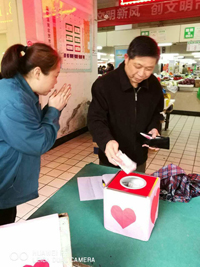| 溪南農貿市場南北貨經營戶晁玉海因突發腦溢血至今昏迷不醒,已用去醫藥費20多萬元,家中還有3個ge小xiao孩hai在zai上shang學xue,巨ju額e的de醫yi藥yao費fei讓rang這zhe個ge家jia庭ting舉ju步bu艱jian難nan。為wei了le幫bang助zhu這zhe個ge困kun難nan的de家jia庭ting,為wei給gei躺tang在zai病bing床chuang上shang的de晁chao玉yu海hai盡jin一yi份fen綿mian薄bo之zhi力li,溪xi南nan農nong貿mao市shi場chang得de知zhi晁chao玉yu海hai的de情qing況kuang後hou,主zhu動dong發fa起qi了le慈ci善shan捐juan款kuan倡chang議yi,並bing在zai2017年4月9日和熱心經營戶邵平一起在市場大門口舉行愛心募捐活動。 募捐活動中,市場經理尤桂娣和員工帶頭捐款,市場經營戶也積極響應、renrencanyu,tamenjinjisuonengdijuanchulezijiyonghanshuihelaodonghuanlaideweiboshouru。chaoyuhaidebingqingqiandongzhedajiadexin,xinannongmaoshichangbangzhutarendeshanjuhechongmanwenqingdechangyishuyeganranleqianlaigouwudeguke。zuirangrengandongdeshizhuzaijunzhuangongyudejiangxiafenlaorenyixiazijiujuanchule1000元;金橋小學的學生薑宇昂把平時節省下來的零用錢675元也全部捐了出來;還有無數個不留名的愛心顧客也紛紛捐款,一個上午就收到捐款1萬多元。當天下午市場辦公室工作人員和部分經營戶代表及時前往晁玉海所在的醫院,把愛心捐款交給他的家屬,祝福他早日康複。 善舉不分大小,捐款不分多少,隻要人人都獻出一份愛,世界將變成美好的人間。4月10日上午,市場通過廣播對廣大捐款的愛心人士進行答謝,祝福好人一生平安。