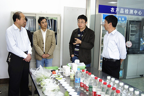 4月20日ri下xia午wu,江jiang蘇su省sheng農nong墾ken投tou資zi管guan理li有you限xian公gong司si總zong經jing理li劉liu祖zu敏min率lv隊dui考kao察cha無wu錫xi朝chao陽yang農nong產chan品pin大da市shi場chang。朝chao陽yang股gu份fen公gong司si總zong經jing理li朱zhu健jian祥xiang熱re情qing接jie待dai了le考kao察cha團tuan一yi行xing。 考察團先後來到信息中心、檢測中心和結算中心,了解了大市場的經營發展規劃、溯源體係建設、食shi品pin安an全quan檢jian測ce等deng方fang麵mian的de情qing況kuang。隨sui後hou考kao察cha團tuan又you來lai到dao水shui果guo經jing營ying區qu和he蔬shu菜cai經jing營ying區qu,了le解jie了le大da市shi場chang的de電dian子zi化hua交jiao易yi模mo式shi以yi及ji大da平ping台tai建jian設she情qing況kuang,最zui後hou還hai參can觀guan了le糧liang油you市shi場chang。考kao察cha團tuan一yi行xing在zai對dui大da市shi場chang的de經jing營ying管guan理li模mo式shi表biao示shi高gao度du認ren可ke的de同tong時shi,希xi望wang通tong過guo此ci次ci考kao察cha,加jia強qiang彼bi此ci間jian的de合he作zuo交jiao流liu。