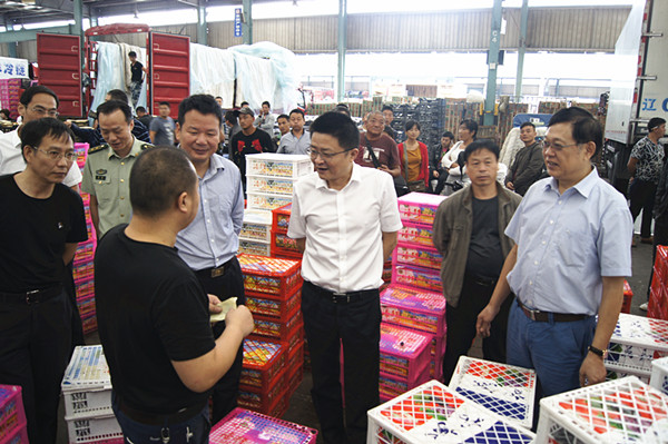節日前的朝陽農產品大市場商品雲集、人頭攢動、車(che)水(shui)馬(ma)龍(long),一(yi)派(pai)交(jiao)易(yi)繁(fan)忙(mang)的(de)景(jing)象(xiang)。秦(qin)區(qu)長(chang)一(yi)行(xing)先(xian)後(hou)來(lai)到(dao)水(shui)果(guo)市(shi)場(chang)各(ge)經(jing)營(ying)大(da)棚(peng),現(xian)場(chang)查(zha)看(kan)了(le)節(jie)日(ri)商(shang)品(pin)的(de)備(bei)貨(huo)情(qing)況(kuang),並(bing)與(yu)部(bu)分(fen)水(shui)果(guo)客(ke)商(shang)親(qin)切(qie)交(jiao)談(tan),詢(xun)問(wen)了(le)商(shang)品(pin)的(de)產(chan)地(di)、行情等情況,隨後又來到結算中心、檢測中心、信息中心,詳細了解了食品安全溯源、農殘檢測與超標處理等相關情況,秦區長對朝陽農產品大市場在節日期間的保供穩價保安全工作表示肯定。