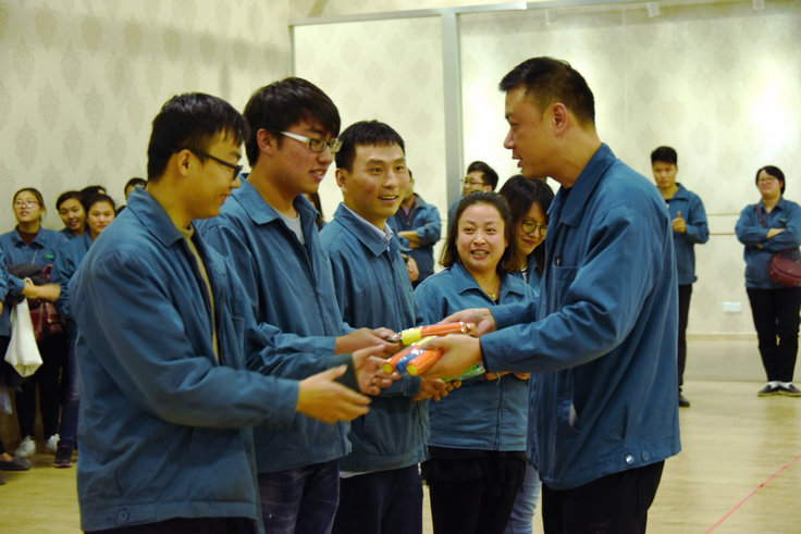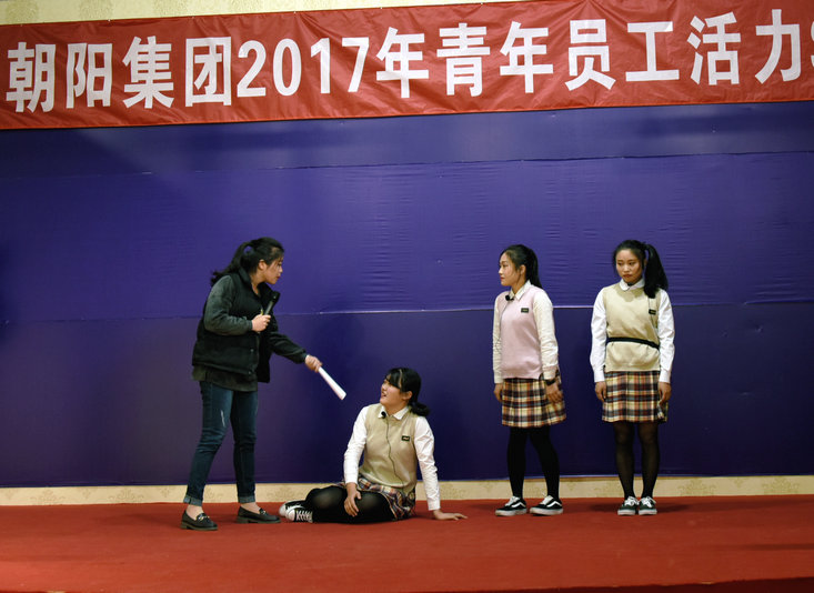 雙11,從光棍節,到購物狂歡節,如今更變成了無錫朝陽集團的青年節。今年的11月11日下午,來自朝陽股份、天惠超市、儲運公司、集團科室和朝陽班的80多名青年職工代表陸續來到無錫文化工藝品市場三樓大廳內,共同參與到一年一度的青年活動中來。朝陽股份房坤主持了本場活動。 活動共有兩個環節。在第一場“才藝展示”環節中,來自三個主體單位和朝陽班的10組選手分別拿出了自己的拿手絕活,有唱歌、相聲、小品、籃球秀、軍體拳、舞步絕活等表演。台上的選手非常認真的進行表演,並為自己拉票;ertaixiadeguanzhongzaiweixintoupiaoxiaochengxuzhongweizijixiaidejiemujinxingtoupiao。biaoyanjingcaichuyiciyouyicidezhangsheng,taishangtaixiademiqiehudong,henkuaijiubaxianchangdeqifentiaodongleqilai。zuihoulaizichaoyanggufendewangyi、天惠超市王崢聯合打的一套軍體拳贏得了大家的共同認可,以最高票獲得了冠軍;而來自朝陽班的詩朗誦《致橡樹》以其聲情並茂的演繹感染了很多觀眾,獲得了第二名。 在第二場團隊活動環節,各單位青年職工臨時組隊,共有6組團隊一起競技“五人六足”趣味賽。這個活動非常考驗團隊的凝聚力和統一作戰精神,最後朝陽股份團隊脫穎而出,贏得了最終的勝利。 集團總經理室主要領導、gedanweizhuyaolingdaodouchuxilebencihuodong,geiyugongsiguangdaqingnianzhigongjidadezhichiheguli。jituanzongjingliyangxingdexianshengzuihouzuozhongyaojianghua,tabiaoshi,qingnianshiguojiadeweilai,gengshiqiyedeweilai。jintiandehuodongbandehenyouchaoqihehuoli,yiniangengbiyinianhao。xiwangguangdaqingnianzhigongnenggouzaigongzuoheshenghuozhonggengduozhanxianhuoli,genghaofahuinengli,dazaochaoyangqiyedegengqiangjingzhengli,weiwomen“百年朝陽”的奮鬥目標而不斷努力!