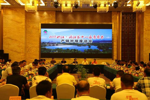 8月6日—8日,無錫朝陽股份有限公司水果市場副經理張曉雲、蔬菜市場副經理於愛娟以及葡萄客商代表參加了由中國果品流通協會、浙江省農業廳、浙江省供銷合作社聯合社等主辦、浦江縣人民政府承辦的"浙江·浦江第十一屆葡萄節暨浦江葡萄區域公用品牌啟動儀式"。  8月7日晚上,2018浙江·浦江第十一屆葡萄節產銷對接座談會在浦江隆重舉行。中國果品流通協會、上海市果品行業協會、上農批、杭州果品集團、朝陽集團等相關領導、100餘名外來客商代表,以及30多位浦江本地葡萄產業、黃桃產業代表齊聚一堂,共商浦江名優農產品未來發展。8月8日上午,舉行了區域公用品牌授牌儀式,縣委書記帶隊參觀了蔣才文村葡萄園等,講解了葡萄鋼管噴霧施肥澆水的先進技術。  此次會議旨在全麵宣傳、推介和展示“浦江葡萄“區域公用品牌形象,提升浦江葡萄的知名度與美譽度,提高市場的影響力與核心競爭力,助推農業增效、農民增收,助力鄉村振興。