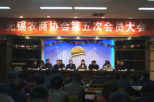 12月26日上午,無錫農商協會第五次會員大會在朝陽農產品大市場召開。無錫農商協會近100名會員出席了大會,市工商聯副主席俞波、市民政局副調研員劉長風、市郵政局副局長王貴祥、市農委水產指導站站長、高級推廣研究員張憲中、市農委綜合處處長孫學軍、市農委信息中心主任姚靜等領導出席會議。
