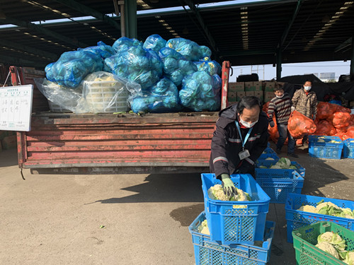 自2017年12月,省人大、市人大代表、朝chao陽yang集ji團tuan董dong事shi長chang張zhang君jun君jun牽qian頭tou朝chao陽yang蔬shu菜cai市shi場chang幫bang助zhu宜yi興xing萬wan石shi鎮zhen漕cao東dong村cun解jie決jue滯zhi銷xiao蓮lian藕ou以yi來lai,朝chao陽yang蔬shu菜cai市shi場chang就jiu與yu宜yi興xing漕cao東dong村cun建jian立li了le長chang期qi對dui口kou扶fu貧pin關guan係xi。今jin年nian,受shou新xin型xing冠guan狀zhuang病bing毒du感gan染ran的de肺fei炎yan疫yi情qing影ying響xiang,宜yi興xing漕cao東dong村cun的de鬆song花hua菜cai出chu現xian大da量liang滯zhi銷xiao現xian象xiang。緊jin急ji關guan頭tou,朝chao陽yang蔬shu菜cai市shi場chang再zai次ci伸shen出chu援yuan手shou,主zhu動dong與yu漕cao東dong村cun書shu記ji對dui接jie, 自2月13日起,漕東村每天運送3噸鬆花菜到蔬菜市場,既為市場增加了銷售,也為菜農解決了滯銷難題。