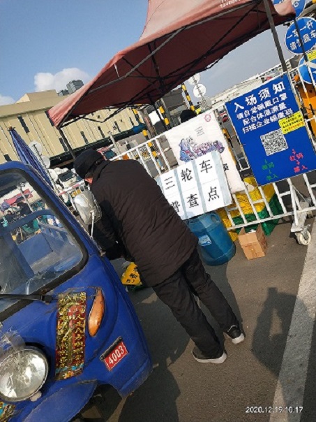農產品大市場北區對場內涉及車輛進行統計,填寫登記表,並且根據屬地派出所要求,拍攝車輛、人員信息照片、噴塗普查字樣等照片進行上傳。(楊敏)