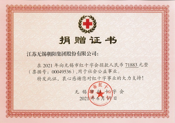 無錫朝陽集團積極參與2021年“紅十字人道萬人捐”活動