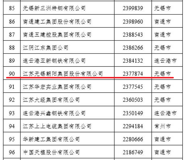 9月23日,江蘇省工商聯發布“2021江蘇民營企業200強”榜單,江蘇無錫朝陽集團股份有限公司位列第90位。