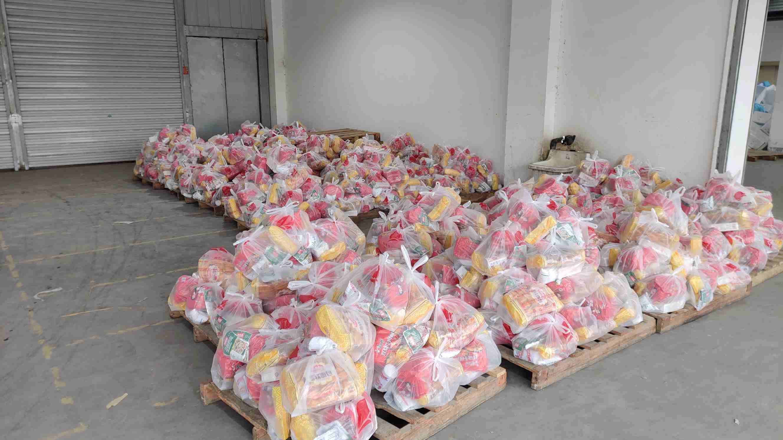 830日中午,在天惠超市生鮮配供月台上,裝載著各類蔬菜、水果等應急物資的叉車來來往往。一旁,員工們正忙著分裝、打包、裝袋,在天惠超市倉庫、蔬果配供及總部辦公室通力合作下,兩個多小時的時間就完成了620份保供物資的保障工作。本次每份保供物資都按照14種生活必需品的規格進行打包,能夠滿足一戶人家3天的用量。每份均含有5種蔬菜、2種水果、1份肉品及黃酒、方便麵等其他生活必需品。隨後,這些保供物資裝車陸續發往指定地點,解決受疫情影響的部分居民的生活需求問題。