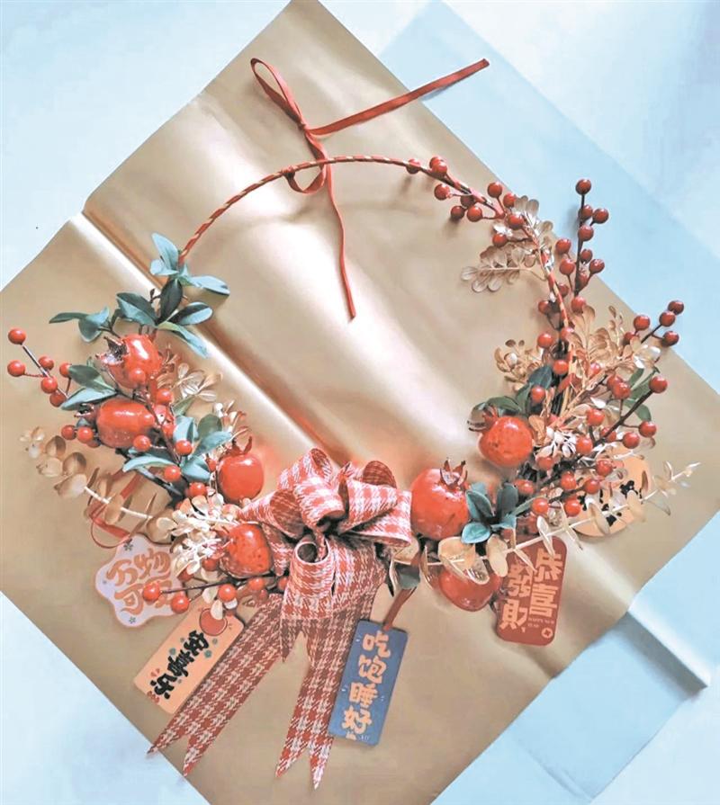 還有“進階版”詳細教程:加入五代同堂果、石榴果、仿真柿子、桔梗製作的小掃把;用流蘇穗穗、玩偶掛件、卡片等做成一個精致的門掛,寓意著新的一年平安好運;將冬青和尤加利葉做成一個小巧的收納盒,裏麵放置香橙片,寓意著心想事成;收納盒做大一點,還可以放紙巾、遙控器、鑰匙等物品……自己動手,根據個人喜好增減裝飾物,看膩了的年宵花“變廢為寶”,也是一大樂趣呢。 (晚報記者 吳雨琪/文、攝) |