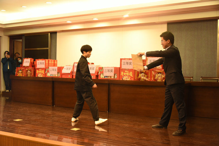 開開心心鬧元宵,大展宏“兔”迎新年。在癸卯兔年元宵佳節即將來臨之際,2月2日(正月十二)下午,無錫朝陽集團2023大展宏“兔”鬧元宵活動在集團總部熱鬧開鑼,朝陽人繼續以自己熱烈喜慶的方式歡度元宵佳節! 本次活動既保留了傳統經典的遊藝項目,如拔河、滾鐵環、猜燈謎、套模模、撲克比賽等,又新增了蒙眼鏟錢、趣味推瓶子等新式遊戲,吸引了很多員工參與和圍觀。本次活動共有來自集團本部和各基層單位的幹部職工代表260人參加。 拔河比賽是整個鬧元宵活動中的經典團體項目。中午時分,來自朝陽股份、天惠超市一隊二隊和由儲運公司、大市場北區組成的聯盟隊共60名參賽選手再一次在工藝品市場運河邊場地上聚集,開啟兔年拔河冠軍爭奪戰。 tianhuichaoshigonghuizhuxizhangxiaosongzuoweibencibahebisaidezongcaipan,zhenglihaocansaiduiwu,jieshaowanbisaiguize,yishengqingcuidekoushaoshengxiangqi,sizhiduiwukaishiliangliangjiaozhujuesaiminge。chaoyanggufenhetianhuichaoshiyiduizaicijinrujuesai,yeshiduoniandelaoduishou。yigeyaoweimian,yigeyaotiaozhan,laoduishouxiangjianfenwaiyanhong。juesaikaishi,liangbiandebaheduiyuanmenyiqizuanjinchangsheng,maozujiaojinwanghoula,xunsuxingcheng“兩邊倒”態tai勢shi。但dan終zhong究jiu實shi力li懸xuan殊shu,兩liang輪lun過guo後hou,朝chao陽yang股gu份fen拔ba河he隊dui就jiu成cheng功gong衛wei冕mian冠guan軍jun,天tian惠hui超chao市shi一yi隊dui繼ji續xu屈qu居ju亞ya軍jun。集ji團tuan總zong經jing理li室shi主zhu要yao領ling導dao分fen別bie為wei參can賽sai隊dui伍wu頒ban發fa了le獎jiang品pin。 jiexialaidetuanduijieliguntiehuanxiangmuyijiubaoliu,sigecansaiduiwuyiqijiaozhu,yichangdingshengfu。jingguojiliedebipin,dashichangbeiqutuanduidisancichanliandiyiming,erchaoyanggufentuanduiyezaicihuodedierming。