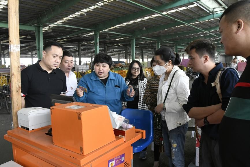 來訪一行參觀考察了朝陽陳列館、信息中心、檢測中心、結算中心、蔬菜、水果兩大市場、萬噸冷庫及糧油市場,較全麵地了解了市場的發展曆程、管理模式,以及通過信息化技術手段致力於打造智慧市場的相關舉措。他們對市場的全程電子化交易結算、溯源體係建設、食品安全檢測、大數據大平台建設給予了高度讚譽。