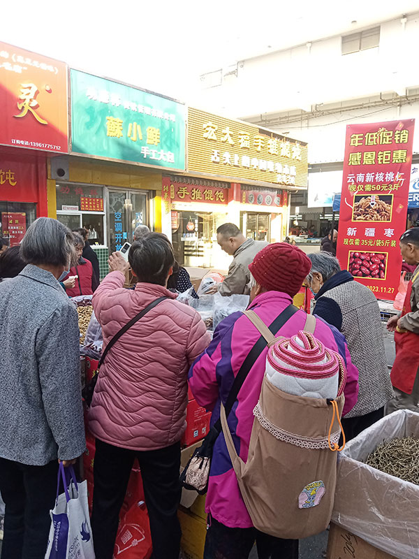 小雪時節,草木凋零,冰(bing)凍(dong)蟲(chong)伏(fu),這(zhe)是(shi)冬(dong)補(bu)養(yang)生(sheng)的(de)大(da)好(hao)時(shi)節(jie),家(jia)家(jia)戶(hu)戶(hu)都(dou)忙(mang)著(zhe)準(zhun)備(bei)進(jin)補(bu)食(shi)材(cai)。朝(chao)陽(yang)農(nong)貿(mao)市(shi)場(chang)適(shi)時(shi)開(kai)展(zhan)了(le)南(nan)北(bei)幹(gan)貨(huo)惠(hui)民(min)展(zhan)銷(xiao)會(hui),讓(rang)我(wo)們(men)一(yi)起(qi)走(zou)近(jin)現(xian)場(chang)看(kan)看(kan)吧(ba)。 在水產區廣場上,很多攤位前都圍滿了人。比如在靈德靈店鋪前的幹貨攤位上擺滿了核桃肉和紅棗,價格也相當親民,雲南核桃仁17元/斤,新疆紅棗7元/斤。據老板介紹,雲南的核桃仁口感偏酥,更適合無錫這邊的口味。新疆紅棗的口味則是肉感十足,棗香四溢。