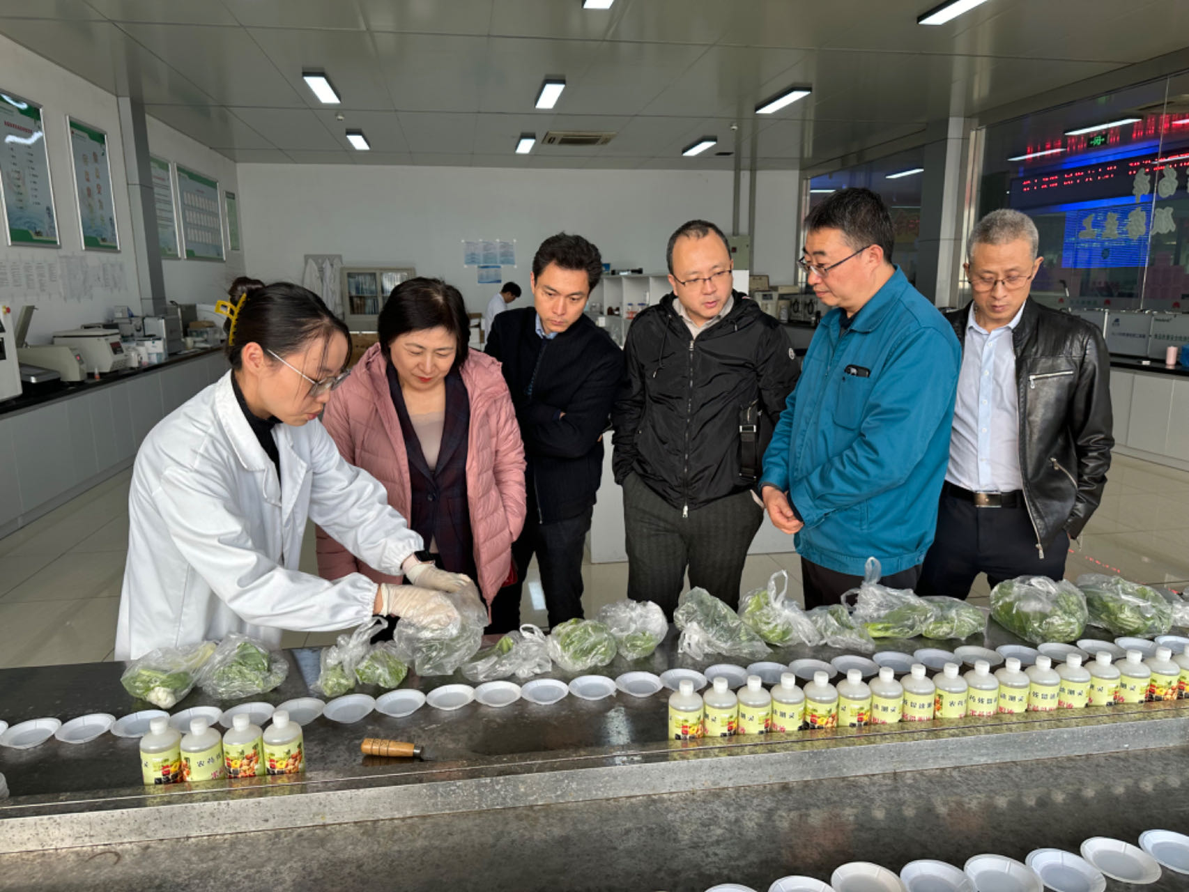 朝陽集團董事長張慶卿先生及股份班子成員熱情接待了來訪團隊,帶領來訪團隊先後參觀考察朝陽陳列館、信息中心、檢測中心、結算中心、蔬菜、水果兩大市場、冷庫及糧油市場,重點介紹了企業的發展曆程、管理模式及新係統上線運行情況,來訪人員對市場的全程電子化交易、溯源體係建設、信息化平台發展等方麵表示高度的讚譽。