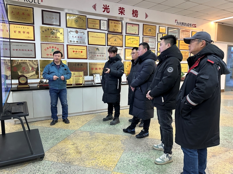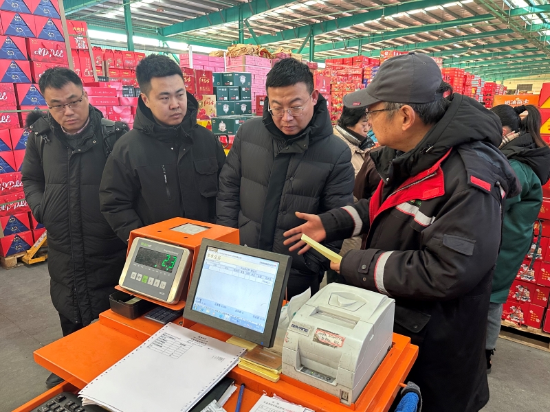 1月24日上午,大連金馬衡器有限公司副總經理王振東一行4人到朝陽農產品大市場參觀考察,朝陽股份顧問秦雄熱情接待了來訪客人。 來訪客人先後參觀考察了朝陽陳列館、信息中心、檢測中心、結算中心及水果市場。秦顧問向客人們詳細介紹了市場的運營管理、建設發展以及信息化建設方麵的情況。