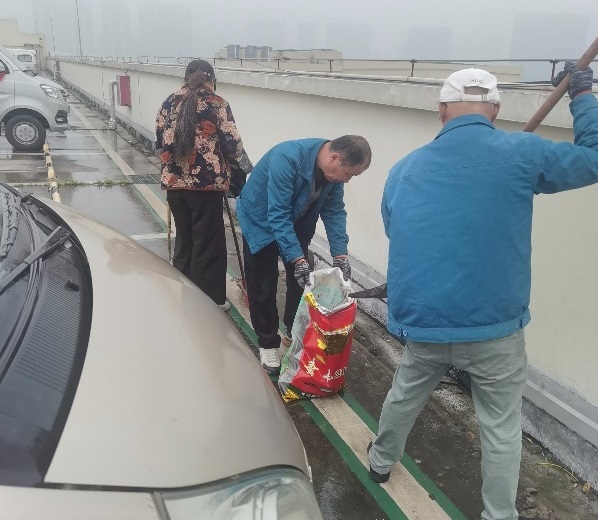 由於地方大,人員少,北區首先對北二庫樓頂的排水井、坡道上和冷庫屋頂的排水口等多處進行清掃垃圾、挖淤泥、掃樹葉,共計清理垃圾20多袋達到百餘公斤。