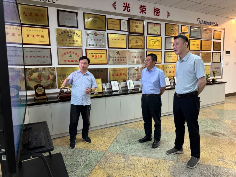 魯會長現場考察了朝陽陳列館及信息中心,張董詳細介紹了市場的全程電子化交易模式、溯源體係建設、信息化數據平台、食品安全檢測等方麵情況。