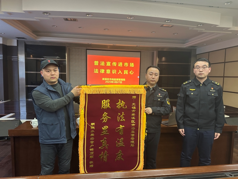 為(wei)感(gan)謝(xie)一(yi)直(zhi)以(yi)來(lai)梁(liang)溪(xi)區(qu)市(shi)場(chang)監(jian)督(du)管(guan)理(li)局(ju)對(dui)市(shi)場(chang)及(ji)廣(guang)大(da)經(jing)營(ying)戶(hu)的(de)支(zhi)持(chi)關(guan)心(xin),客(ke)商(shang)代(dai)表(biao)特(te)製(zhi)錦(jin)旗(qi)贈(zeng)予(yu)區(qu)局(ju),向(xiang)區(qu)局(ju)全(quan)體(ti)工(gong)作(zuo)人(ren)員(yuan)表(biao)示(shi)最(zui)誠(cheng)摯(zhi)的(de)敬(jing)意(yi),也(ye)祝(zhu)願(yuan)區(qu)局(ju)各(ge)項(xiang)工(gong)作(zuo)順(shun)利(li),再(zai)創(chuang)佳(jia)績(ji)! (供稿:張柯宇) |
