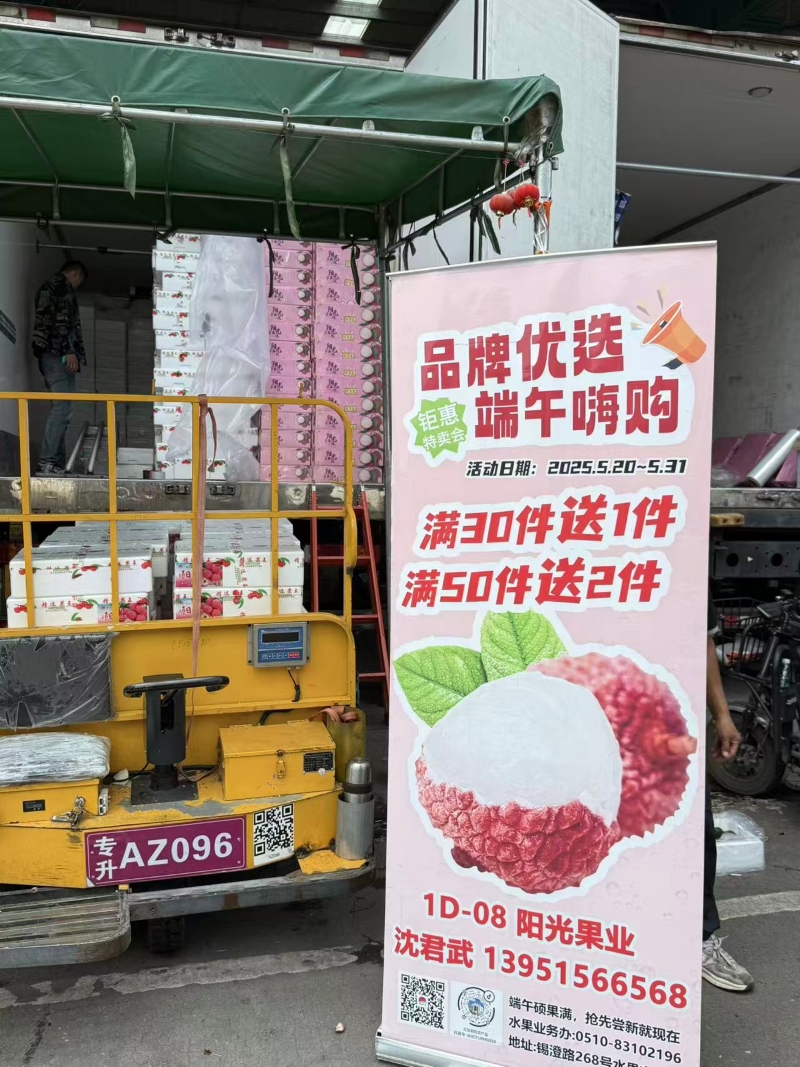 近日,朝陽水果市場端午促銷活動進行地如火如荼,水果市場中央大道兩側荔枝區也相當“鬧猛”,隨著廣東、海南等主產區荔枝大量上市,整車整櫃的荔枝持續到貨,車載銷售的荔枝並車齊驅,車擠車,人擠人,爭相競品這一口初夏甜蜜。