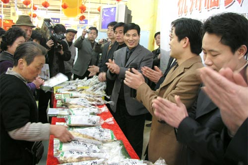 此次活動得到了無錫市農林局、無錫朝陽集團的大力支持,也得到了廣大市民的極大關注。一大早,展台前就圍滿了熱切詢問的顧客。臨安市委、市政府領導、無錫朝陽集團領導分別向市民作了雷筍係列產品的介紹,以及朝陽集團、天惠超市對雷筍產品的組織供應的情況。臨安、無錫兩市各路媒體記者紛紛前來采訪。