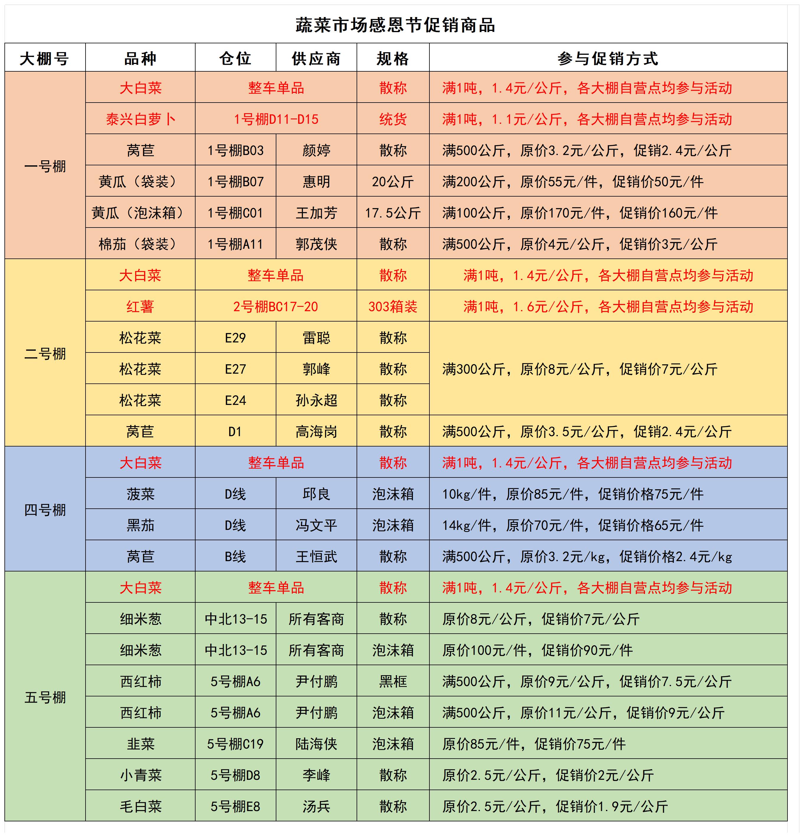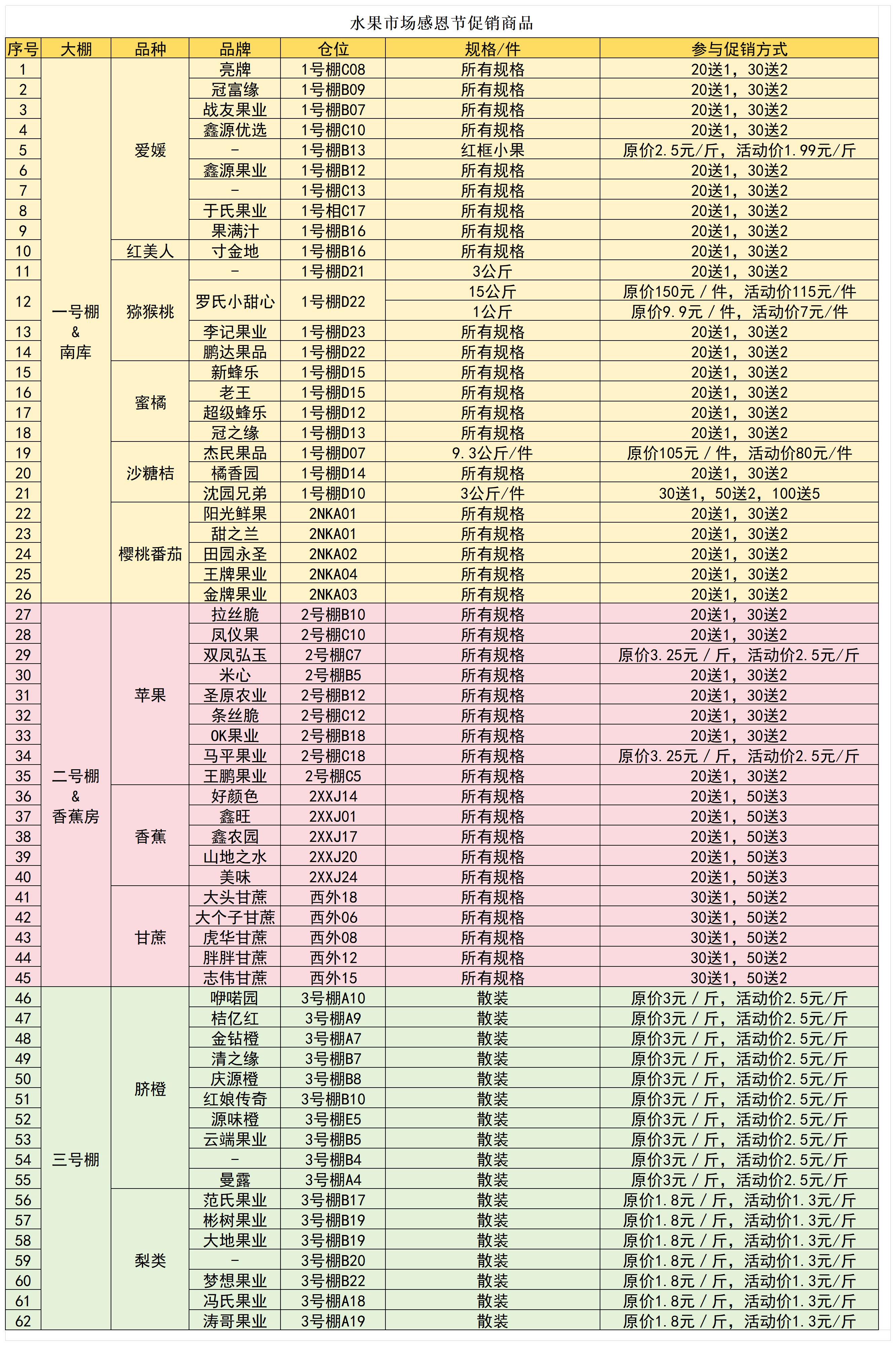 值此感恩節之際,朝陽農產品大市場心懷感恩,向每一位消費者致以誠摯謝意!為回饋一路以來的支持與厚愛,11 月 27 日 - 12 月 4 日,鮮果蔬菜爆品促銷盛典溫情上線!依托產地直供優勢與成熟供應鏈,以暖心低價、新鮮品質,向廣大消費者獻禮,讓感恩與美味相伴同行! 在售區域:水果1號棚BC線