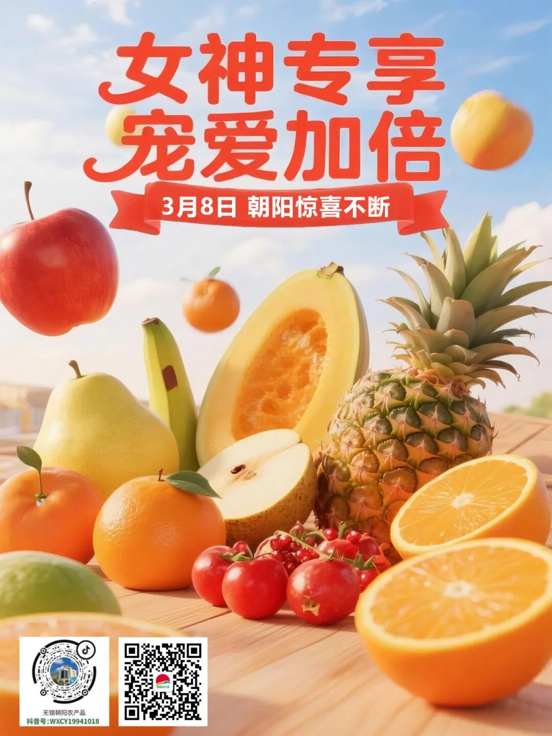 春風送暖,佳節將至,三八女神節如約而至!無錫朝陽水果批發市場專為各位女神定製專屬促銷狂歡,3月8日當天,全場鮮果讓利不停,寵粉福利拉滿,不管是日常補貨、批量采購,都能享實打實的批發優惠,新鮮好果超值購,女神專享,寵愛加倍!