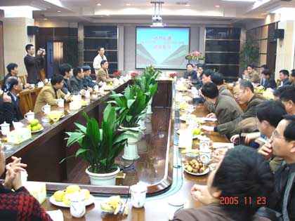朝陽集團總經理楊興德向到訪的領導和客人介紹了朝陽集團企業發展情況,特別是公司在市場建設、改製和信息化建設方麵取得的經驗和成效。