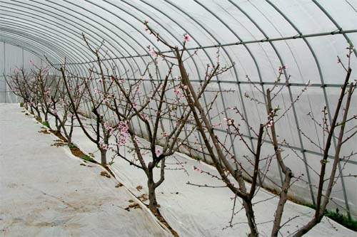 在陽山桃農協會會長周九興、高級農藝師趙老師的陪同下,楊總經理一行參觀了溫室大棚試驗早桃。大棚裏的桃花已是一片妖嬈不讓梅。