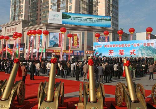 由中國果品流通協會、甘肅省財政廳、甘肅省農牧廳、甘肅省林業廳、天水市人民政府主辦,中國果品流通協會蘋果分會、甘肅省果品流通協會協辦,天水市麥積區人民政府承辦的2009’中國蘋果年會暨天水“花牛”蘋果節於9月16日在麥積區商埠路步行街隆重開幕。