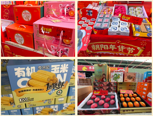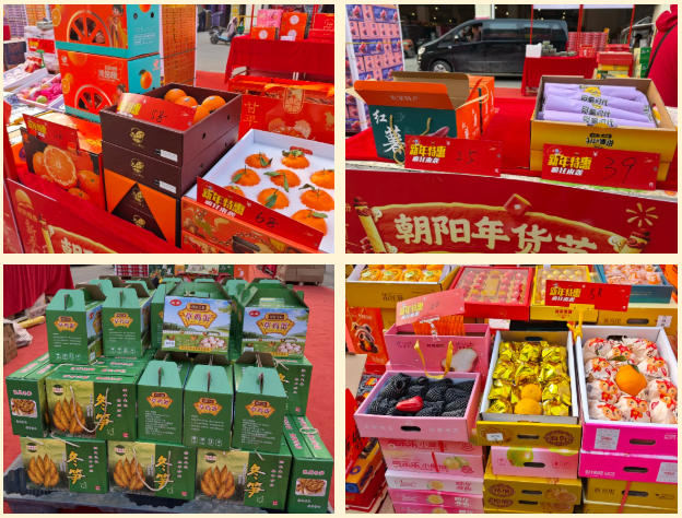 金馬迎新春,年貨正當紅!萬眾期待的朝陽年貨節已盛大啟幕!即日起至2月16日,現場鑼鼓喧天、人氣爆棚,展銷區琳琅滿目的好物、花樣繁多的福利、力度拉滿的優惠,承包您的新春采購全部需求,一站式解鎖最濃年味,快來赴這場新春嗨購盛宴! 注:水果市場營業時間 6:00-17:00 蔬菜市場營業時間11:00-21:00 一踏入年貨節現場,熱烈的新春氛圍便撲麵而來!紅彩旗高掛、中國結搖曳,處處洋溢著喜慶的新年氣息。精心打造的專屬展銷區劃分清晰、品類齊全,鮮果鮮蔬、特色年貨、精品禮盒分區陳列,一眼就能找到心儀好物,逛購體驗直接拉滿,新春囤貨省心又舒心! 本次年貨節精品禮盒多到挑花眼,顏值與品質雙在線,承包您走親訪友、闔家團圓的所有送禮需求!無論是高端鮮果組合禮盒,車厘子、春見、蘋果等優質鮮果精心搭配,大氣精致;還是時令鮮蔬禮盒,冬筍、菌菇、山芋等精品鮮蔬新鮮集結,健康實惠;更有各類特色年貨禮盒,款式豐富、檔次齊全,從親民款到高端款全覆蓋,按需挑選,送禮倍有麵兒,自留超劃算!