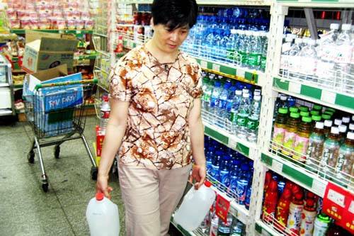 在(zai)天(tian)惠(hui)超(chao)市(shi),時(shi)不(bu)時(shi)有(you)附(fu)近(jin)的(de)居(ju)民(min)進(jin)來(lai)買(mai)淨(jing)水(shui)。這(zhe)位(wei)購(gou)買(mai)了(le)兩(liang)桶(tong)淨(jing)水(shui)的(de)阿(e)姨(yi)告(gao)訴(su)記(ji)者(zhe),她(ta)今(jin)天(tian)早(zao)上(shang)起(qi)來(lai)一(yi)開(kai)水(shui)龍(long)頭(tou)就(jiu)聞(wen)到(dao)一(yi)股(gu)臭(chou)味(wei),中(zhong)午(wu)燒(shao)出(chu)來(lai)的(de)飯(fan)都(dou)是(shi)臭(chou)的(de),隻(zhi)好(hao)全(quan)部(bu)倒(dao)掉(diao),現(xian)在(zai)買(mai)兩(liang)桶(tong)純(chun)水(shui)回(hui)去(qu),準(zhun)備(bei)晚(wan)上(shang)做(zuo)飯(fan)用(yong)。旁(pang)邊(bian)一(yi)位(wei)阿(e)姨(yi)也(ye)說(shuo),“今jin天tian的de水shui太tai臭chou了le,沒mei有you辦ban法fa喝he,我wo早zao上shang起qi來lai聞wen到dao臭chou味wei,還hai以yi為wei是shi陰yin溝gou水shui的de味wei道dao,後hou來lai發fa現xian是shi自zi來lai水shui的de味wei道dao,都dou是shi淤yu泥ni味wei,我wo洗xi衣yi服fu洗xi的de手shou上shang現xian在zai也ye是shi臭chou味wei”。